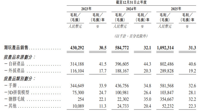 2025年,TOPTOY在中国内地GMV42亿元,2023年至2025年的复合年增长率跳跃50%,收入和毛利较前一年度近乎倍增,经迤逦后的净利润为5.22亿元。