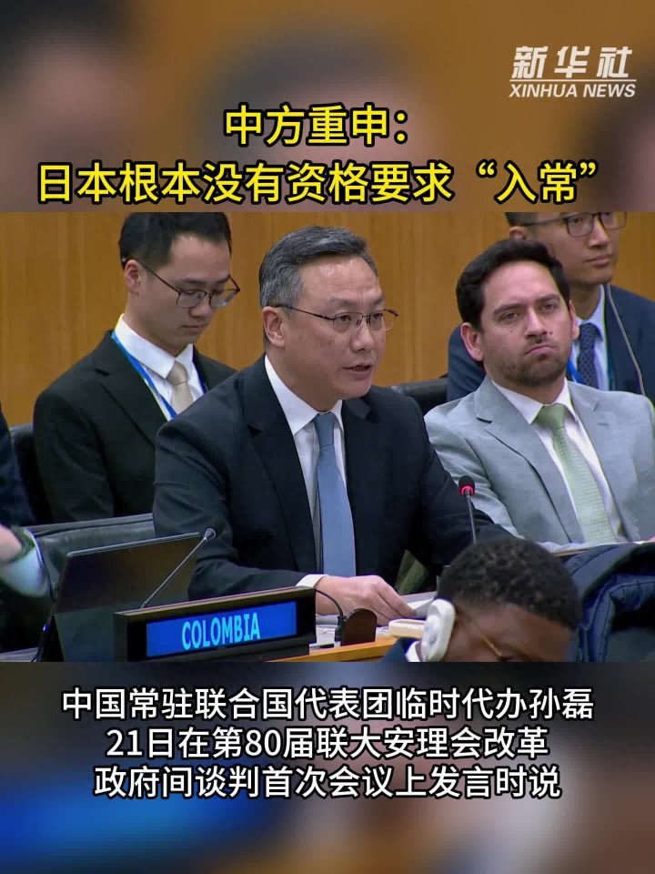1月21日,在第 80 届联大安理会改革政府间谈判首次会议上,中国常驻联合国代表团临时代办孙磊明确表态,日本根本没有资格要求成为安理会常任理事国。