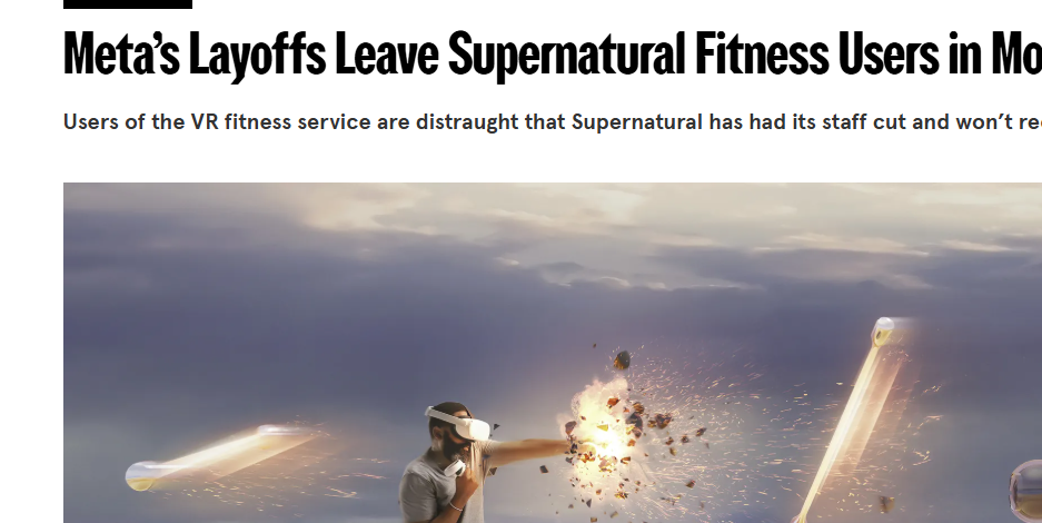 【环球网科技综合报道】1月16日,据WIRED报道,Meta近期对现实实验室部门的大规模裁员,让热门VR健身应用《超自然健身》陷入停更危机。