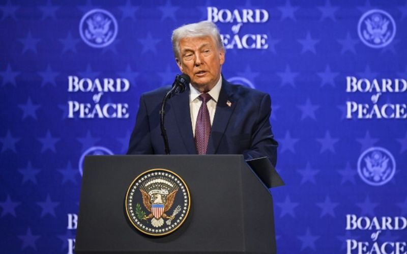 当地时间2026年1月22日,瑞士达沃斯,美国总统特朗普同10余个国家和地区代表签署文件,启动所谓“和平委员会”。图/IC