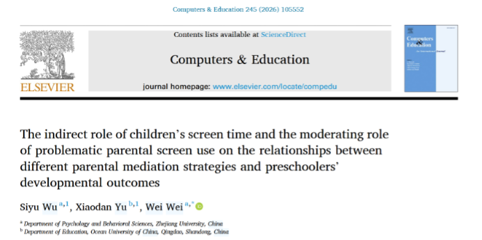 父母干预通过儿童屏幕使用时间影响儿童发展,且父母自身屏幕使用起调节作用。受访者供图
