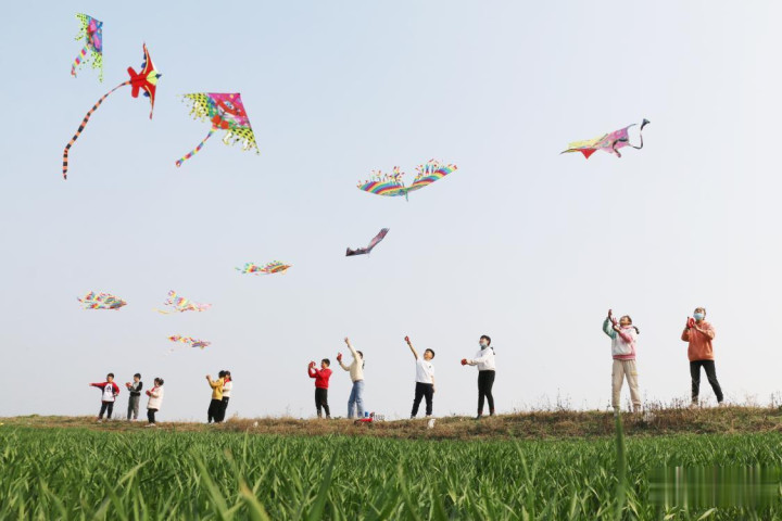 2026年4月1日,江苏省连云港市灌云县圩丰镇东圩村,开云app孩子们在田园里放飞风筝。(吴彩红摄/光明图片)