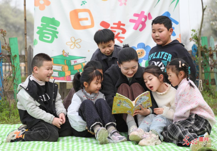 2026年4月1日,江苏省义务评释阶段学生迎来第一个春假,徐州市铜山区三堡街说念新期间斯文实施所开启春假公益托管服务,孩子们在志愿者陪护下踏青游玩、进行户外畅通,尽情享受春假带来的景观。(蒯创摄/光明图片)