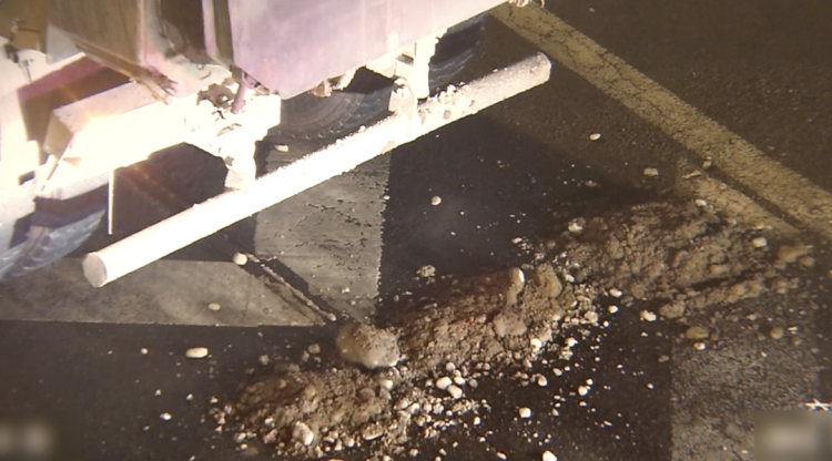 经现场勘查,遗撒位置为西二环主路天宁寺桥至菜户营桥北向南方向最右侧车道,遗撒长度约2公里,遗撒物共造成5车受损。由于现场遗撒面积大,且遗撒物含有渣土、湿泥、石块等情况,清理难度大,环卫集团调集多辆清扫车到场处置并作业。